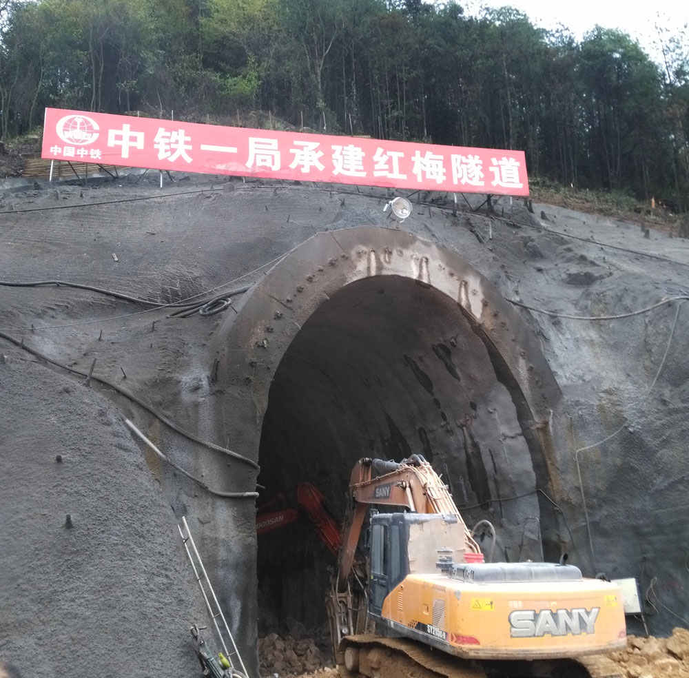 改建鐵路南平至龍巖線鐵路擴(kuò)能改造站前工程N(yùn)LZQ-VIII標(biāo)段紅梅隧道位于龍巖市新羅區(qū)龍門鎮(zhèn),線路全長933m,起始樁號(hào)為YDK244+582~YDK245+515。爆區(qū)周邊環(huán)境復(fù)雜,隧道周邊為居民小區(qū)且有大量居民建筑。在隧道出口段與既有龍門隧道最近距離為27.3m,與既有新龍門隧道最近距離為53.8m。